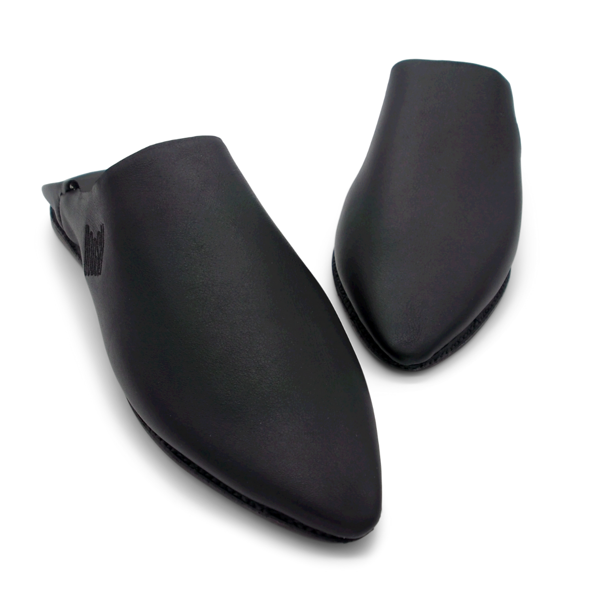 Sleek and timeless, these black leather babouches are a must-have. Crafted by hand with a classic pointed toe and smooth finish.