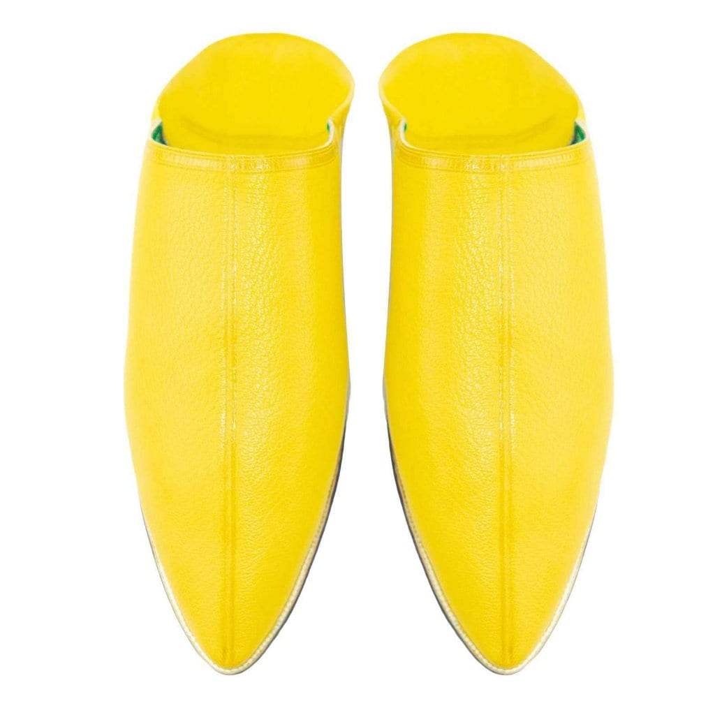 Add a pop of color with these bright yellow leather slippers. Lightweight, breathable, and handmade by skilled Moroccan artisans.